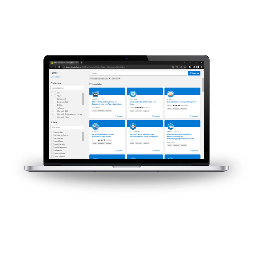 Kies jouw eigen pad en ontwikkel jezelf met de Microsoft Learn Online cursussen. Deze bundel heeft meer dan 4.000 verschillende lespakketten die jou op weg kunnen helpen om je vaardigheden te verbeteren. Na het volgen van deze cursussen kun je ook Microsoft certificaten krijgen door middel van het afleggen van een paar examens. Leer allerlei verschillende sociale en technische vaardigheden die je later in je carrière kunt gebruiken.