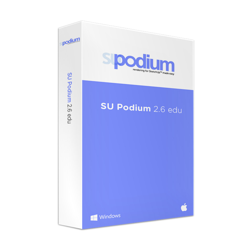SU Podium is een plug-in voor SketchUp Pro om ontwerpen fotorealistisch te renderen. Het draait binnen SketchUp Pro en maakt gebruik van de texturen, (achtergrond)kleuren en schaduwvallen in het programma. Met SU Podium Browser kan je bijv. lampen of planten toevoegen aan jouw model.